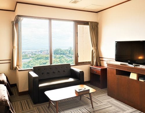 【コンビニ徒歩10秒!駐車場無料/10時チェックアウト】高台に佇み東海岸が一望!広いお部屋でくつろぎながら沖縄を満喫!