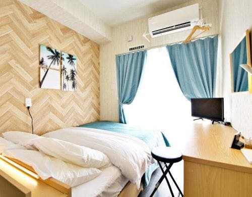 人を介さずチェックインできる非接触型タイプのホテル。人気観光スポット「国際通り」近くの好立地。家電一式完備。