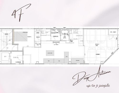 ワンフロアを1グループで貸切利用できる75超の広々ルーム!