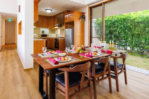 今帰仁村にあるオーシャンビュー BBQ可能 最大15名 3寝室3バスルーム Nalu Mele Resortは、バルコニーが備わるエアコン付きのユニットを提供しています。崎山ビーチから徒歩数分の宿泊施設で、庭と無料専用駐車場を提供しています。