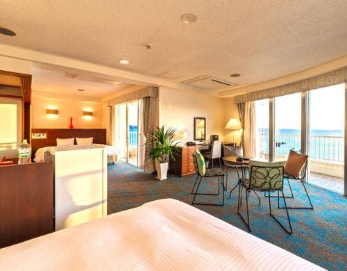 客室の特徴客室から望むオーシャンビューが特徴で、自然を間近に感じられるバルコニー付きのお部屋などを備えています。本館は洋室や和洋室、ジュニアスイート、キッチン付きの部屋など、多様なタイプを提供しています。全室に個別空調のエアコン、インターネット、液晶テレビ、冷蔵庫などを備えており、快適に過ごすことができます。