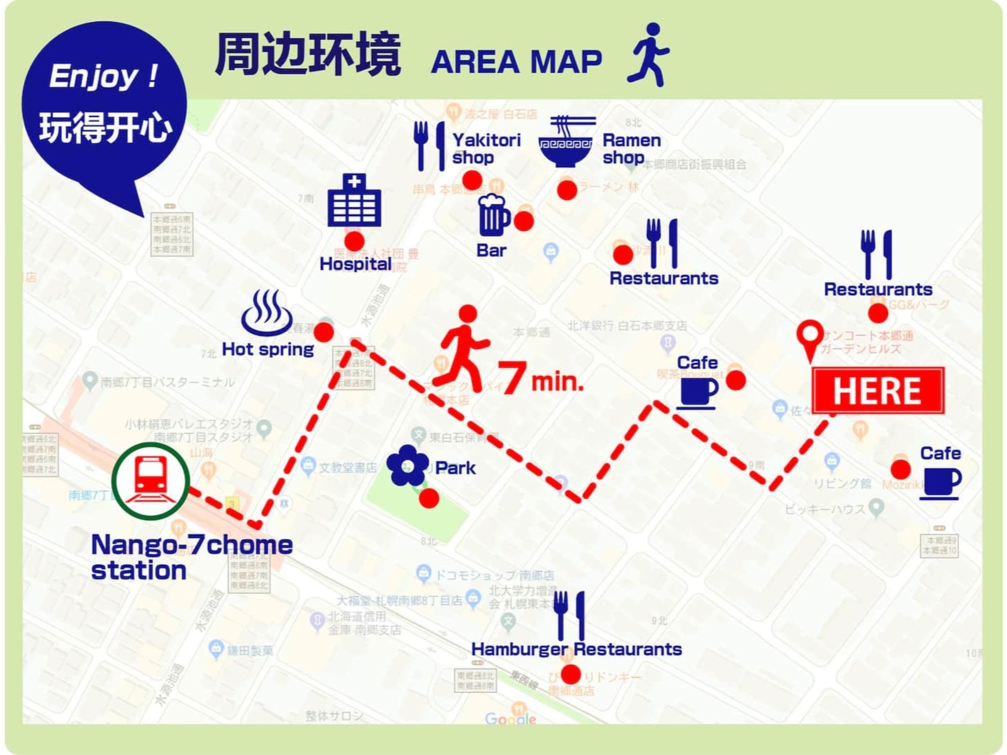 最寄駅「地下鉄東西線南郷7丁目駅」まで徒歩7分。