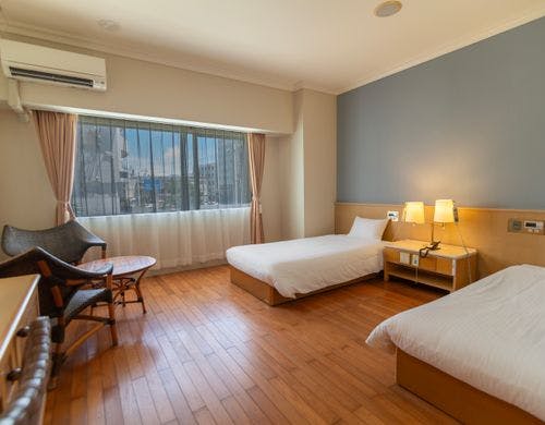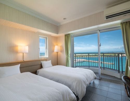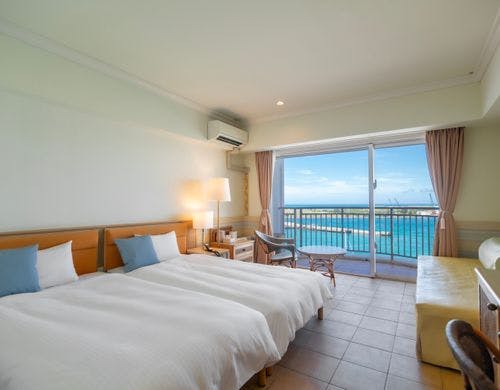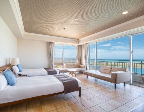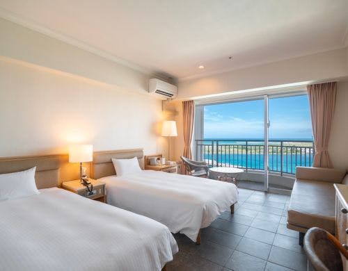 客室は、ジュニアツインやスタンダードツイン、家族連れに最適なハリウッドツイン、最上階にあるぱいぬしまスイート、バリアフリー対応のユニバーサルルーム、そして琉球畳の和室など、多彩なタイプを取り揃えています。どのお部屋からも八重山の海と島々の景色を満喫できます。