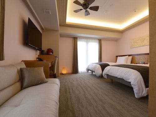 客室は多様なニーズに対応したタイプが揃い、スウェーデン製「DUXIANA」ベッドによる快適な睡眠環境を提供する部屋があります。美容効果が期待されるナノ水を導入や、琉球文化を表現したオリジナルレリーフや、快適な着心地のルームウェア、バス・トイレセパレート型など、細やかなサービスが魅力です。