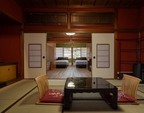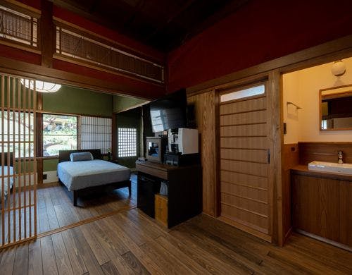 築約100年の伝統的な民家で、屋久杉の天井や昔ながらのお茶屋のような意匠や趣きを残したまま宿泊施設として改修しました。