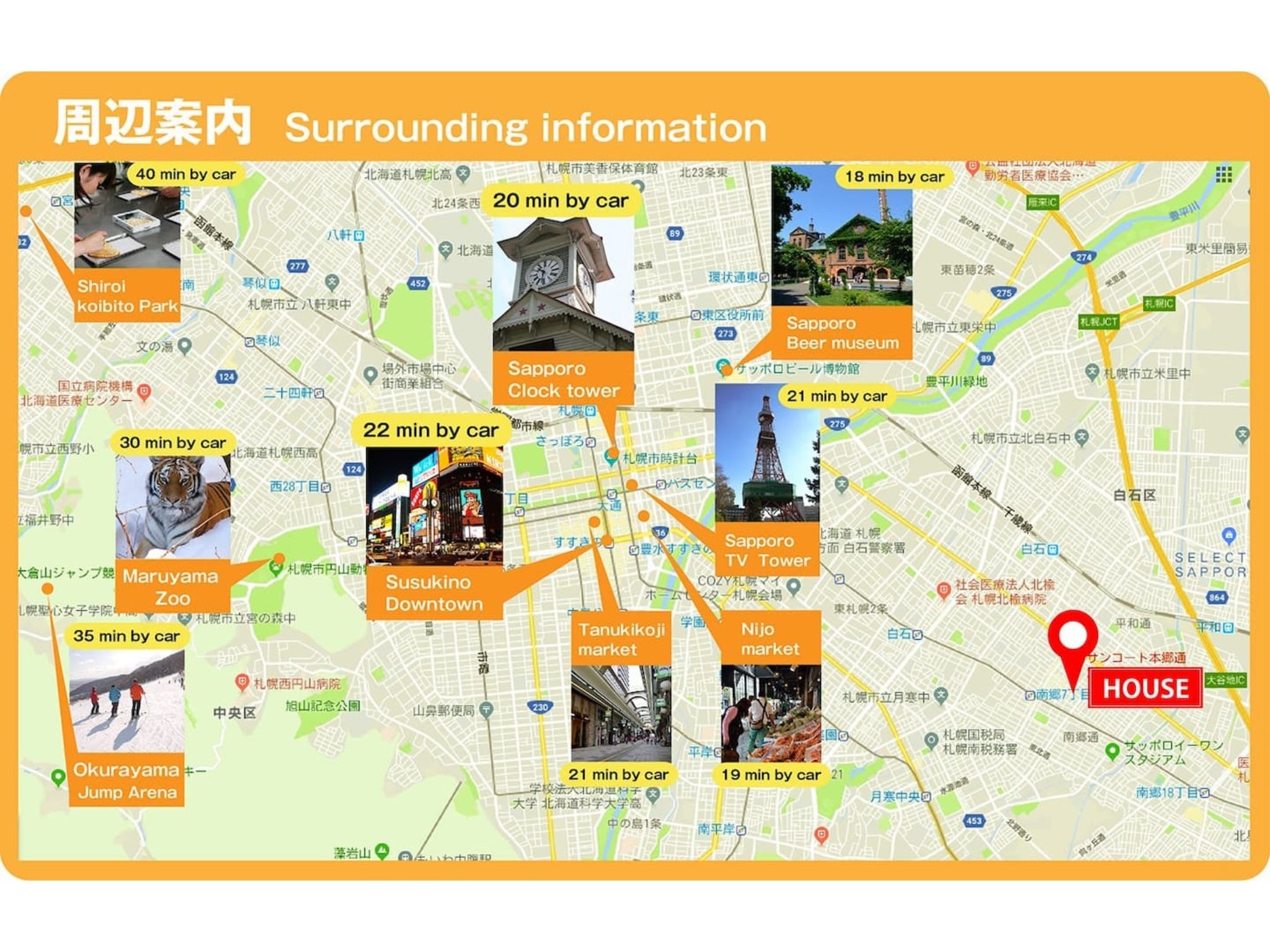 家から札幌中心街(大通公園)まで、17分で到着可能。