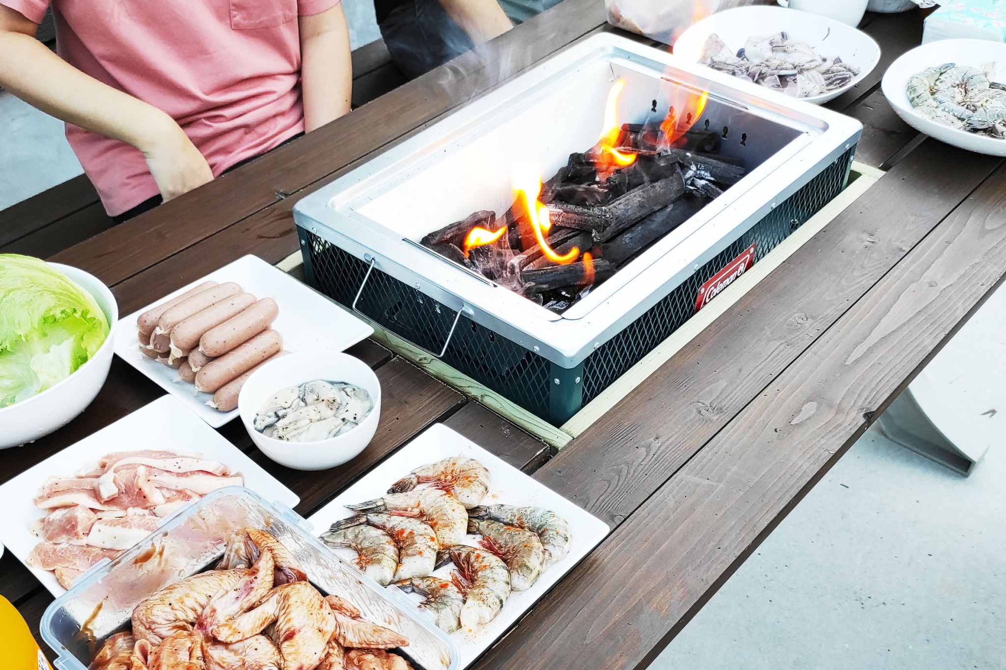 *バーベキュー設備 2000円(コンロ、炭3kg、テーブルセット、網1枚、着火剤1パック)