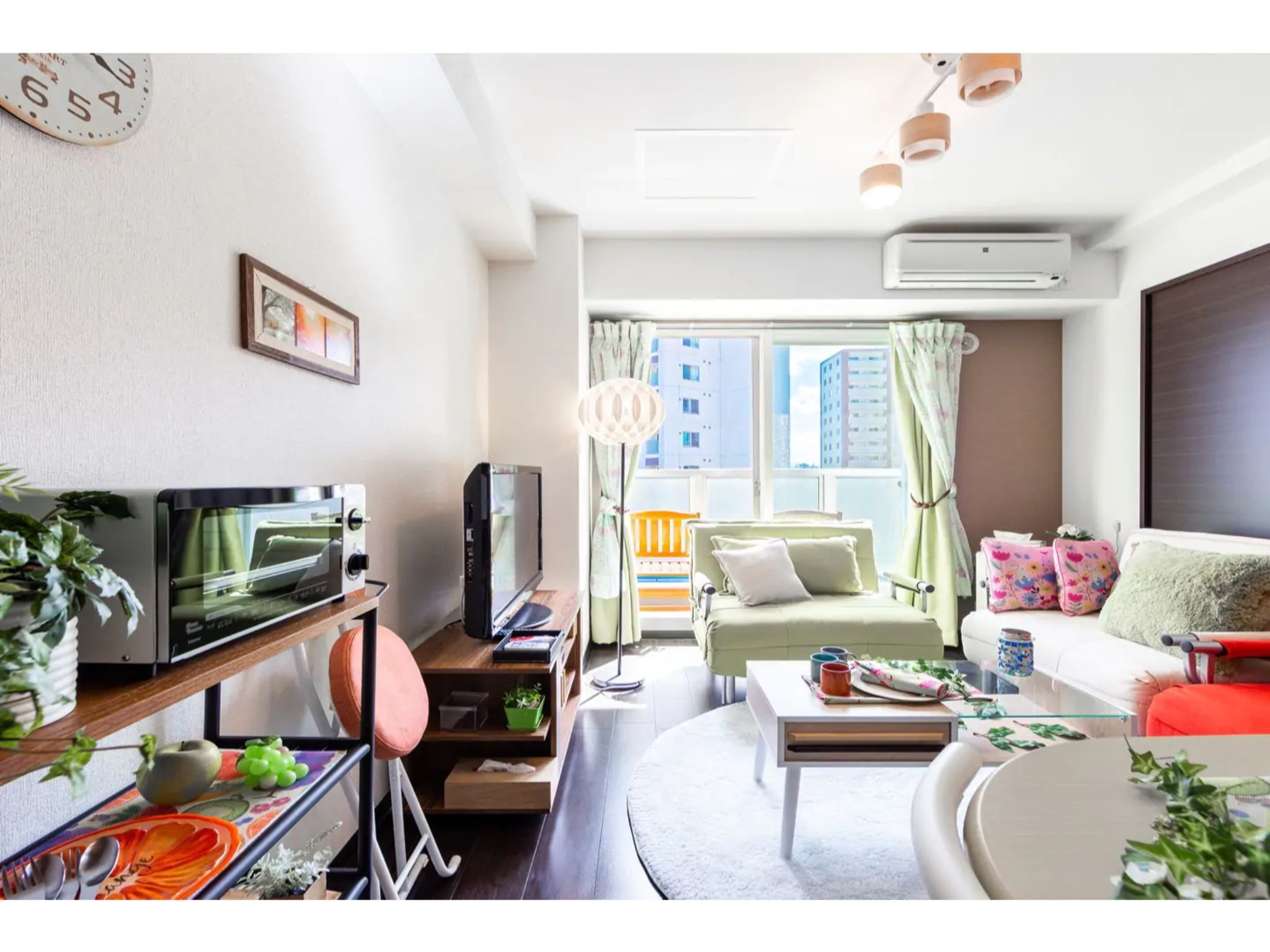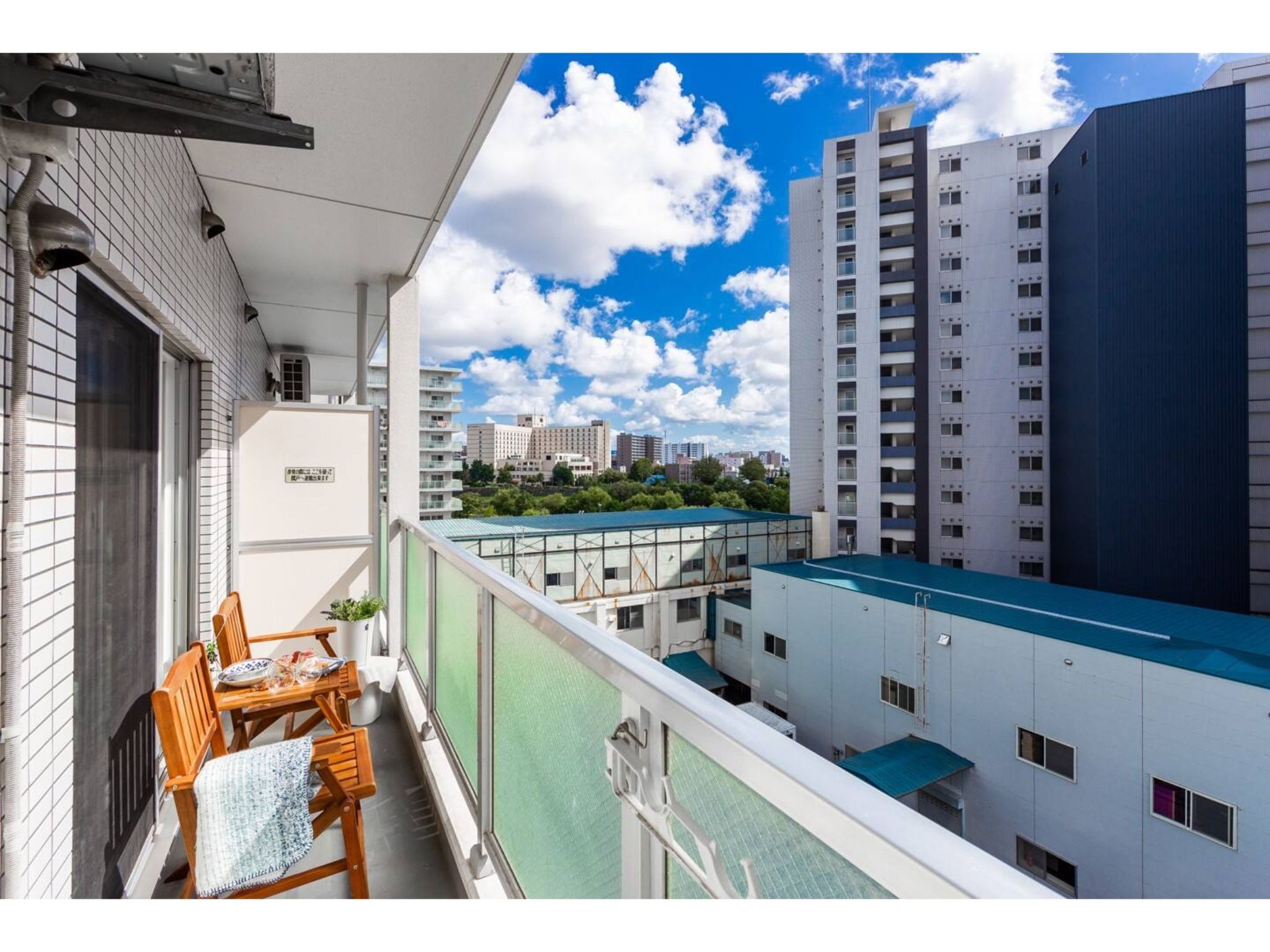 バルコニーからは、札幌市を横断する大きな川「豊平川」の緑を