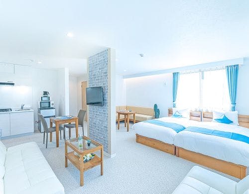 西海岸をイメージした自由を味わうホテルが宮古島に誕生。全室キッチン設備有り、ご家族、カップルのご利用大歓迎