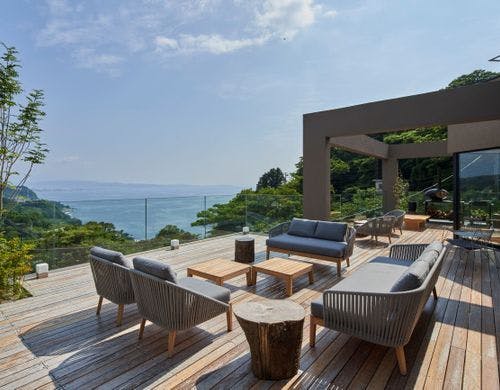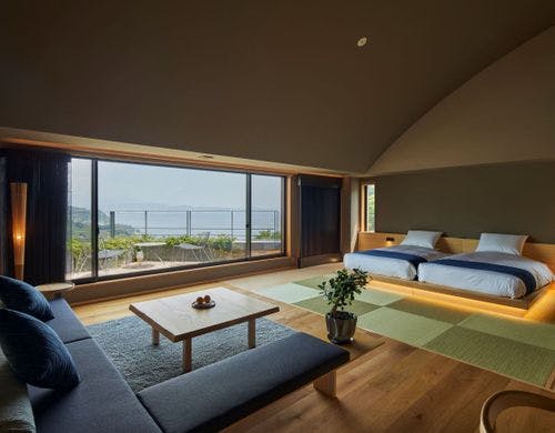 「絵のように美しい海岸」「東洋のリヴィエラ」で知られる江之浦。その土地の恵みを生かし、日本の伝統建築が持つシンプルな美しさと自然を融合させたリトリートです。温泉ミスト浴【ルフロ】もお楽しみ下さい。