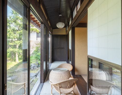近江を代表する豪商の邸宅「外村宇兵衛邸」を一棟貸しでご利用いただける宿泊施設です。歴史と四季を感じられる庭園もございます。