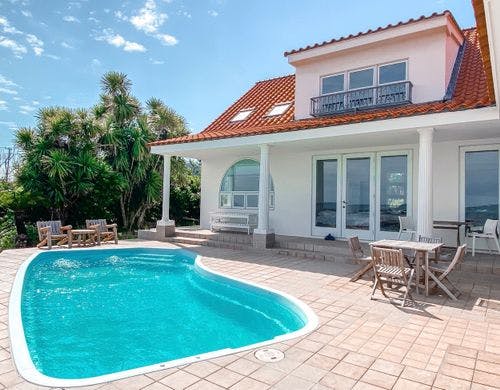 海と繋がっている浜辺の西洋風邸宅。全室オーシャンビュー&プライベートプール&ドッグラン付き[大型犬可]