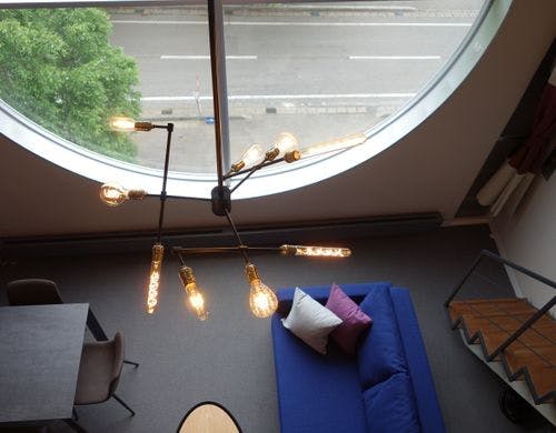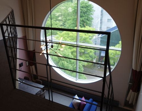 苗場スキー場まで徒歩3分のメゾネットタイプのお部屋。お子様にも喜ばれるおっきな丸窓が特徴のホテルです。