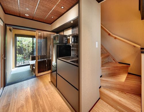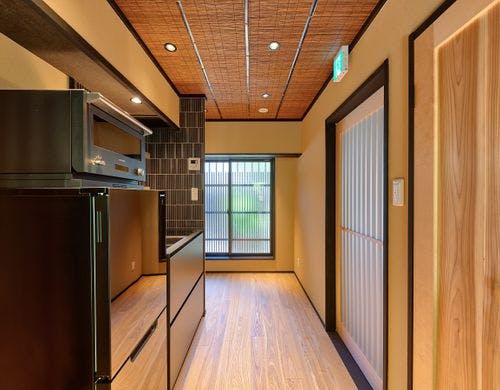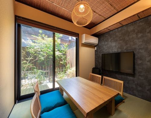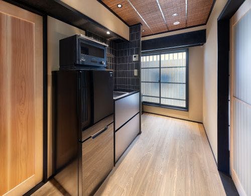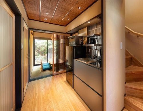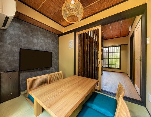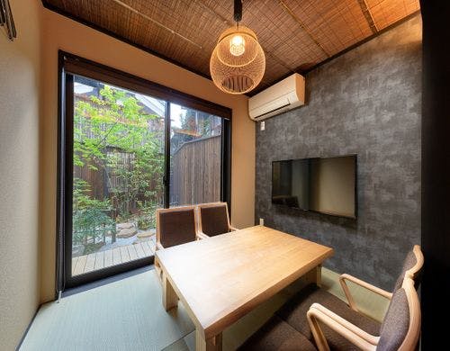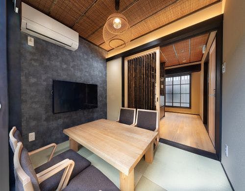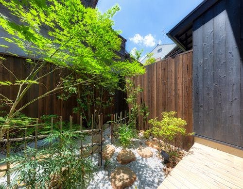 伝統的な町家らしく、間口が狭く奥行きのある京都らしさを感じる建物が特徴的。古き良き京町家で過ごす古都の旅をお楽しみください。