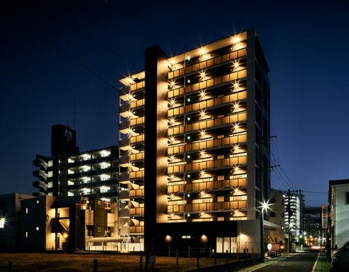 博多駅筑紫口より徒歩13分、ゆったり設計の全40室!全室プロジェクター・ミニキッチン・ドラム式洗濯乾燥機完備で長期滞在でも快適!