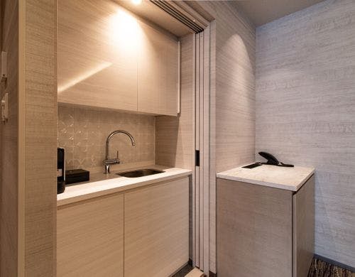 全室ReF製品シャワーヘッド・ドライヤー・ストレートアイロン完備。充実のアメニティバー。「夢洲駅」までメトロで約25分