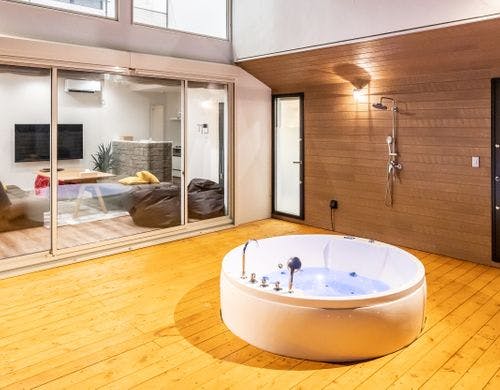 1日1組限定。4名様まで同料金!最大8名様。施設から海が望め、東浪見海岸まで徒歩約5分。広々したウッドデッキに星空ジャグジーとサウナを設置。日ごろの疲れを癒してください。