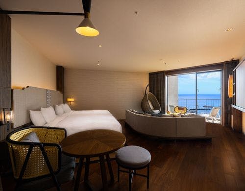 全室オーシャンビューでバルコニー付!インフィニティプールは通年利用可!屋内プール・大浴場・岩盤浴にサウナも利用OK