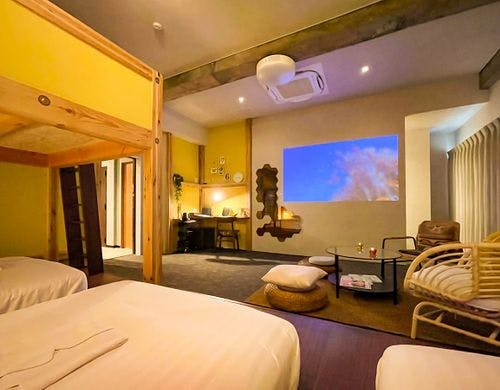 全室プロジェクター付きシーリングライト完備!デザイナーが手掛けたおしゃれな客室で心に残るホテルステイ
