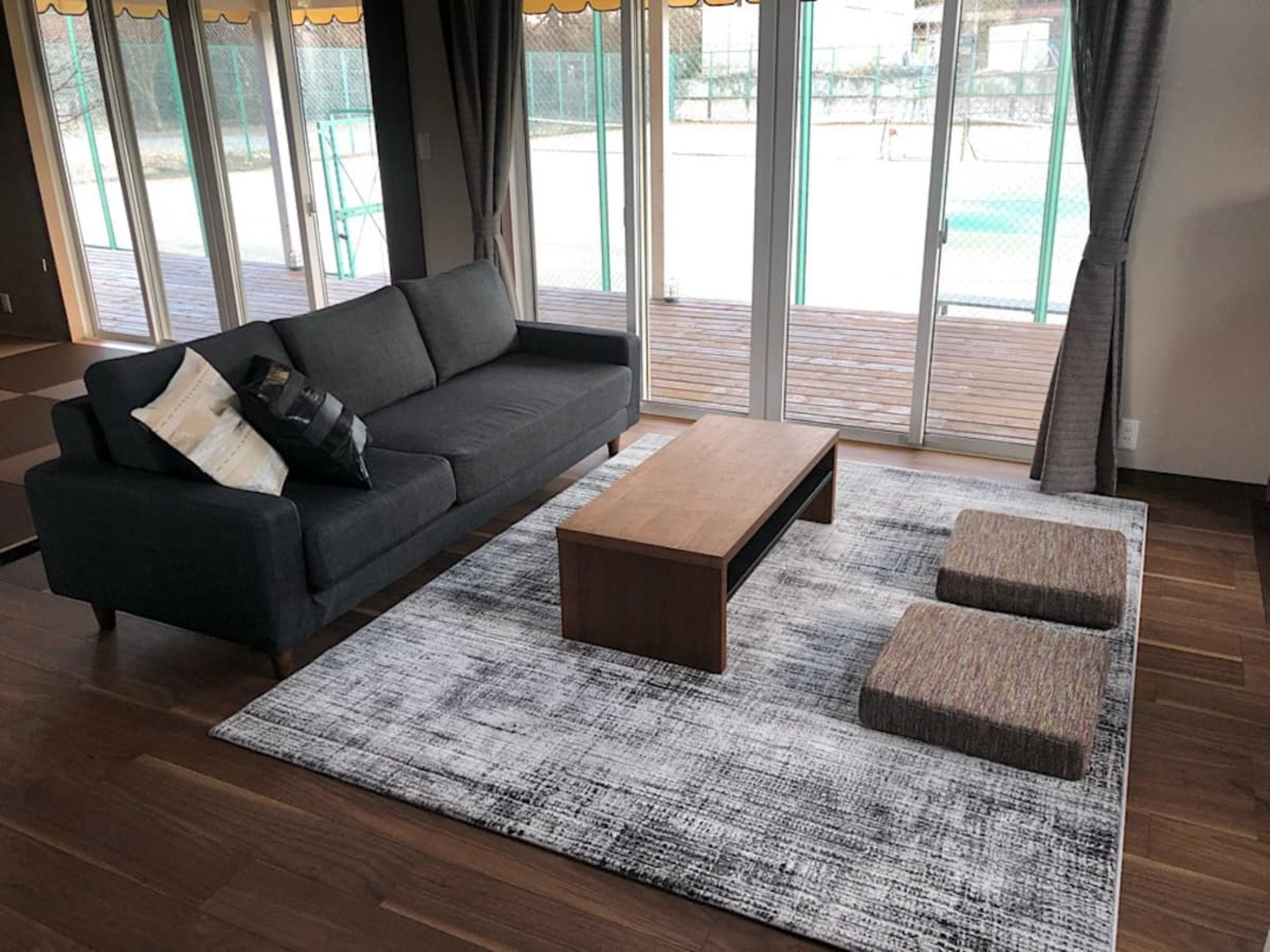 目の前にはテニスコート(ハードコート)3面完備で