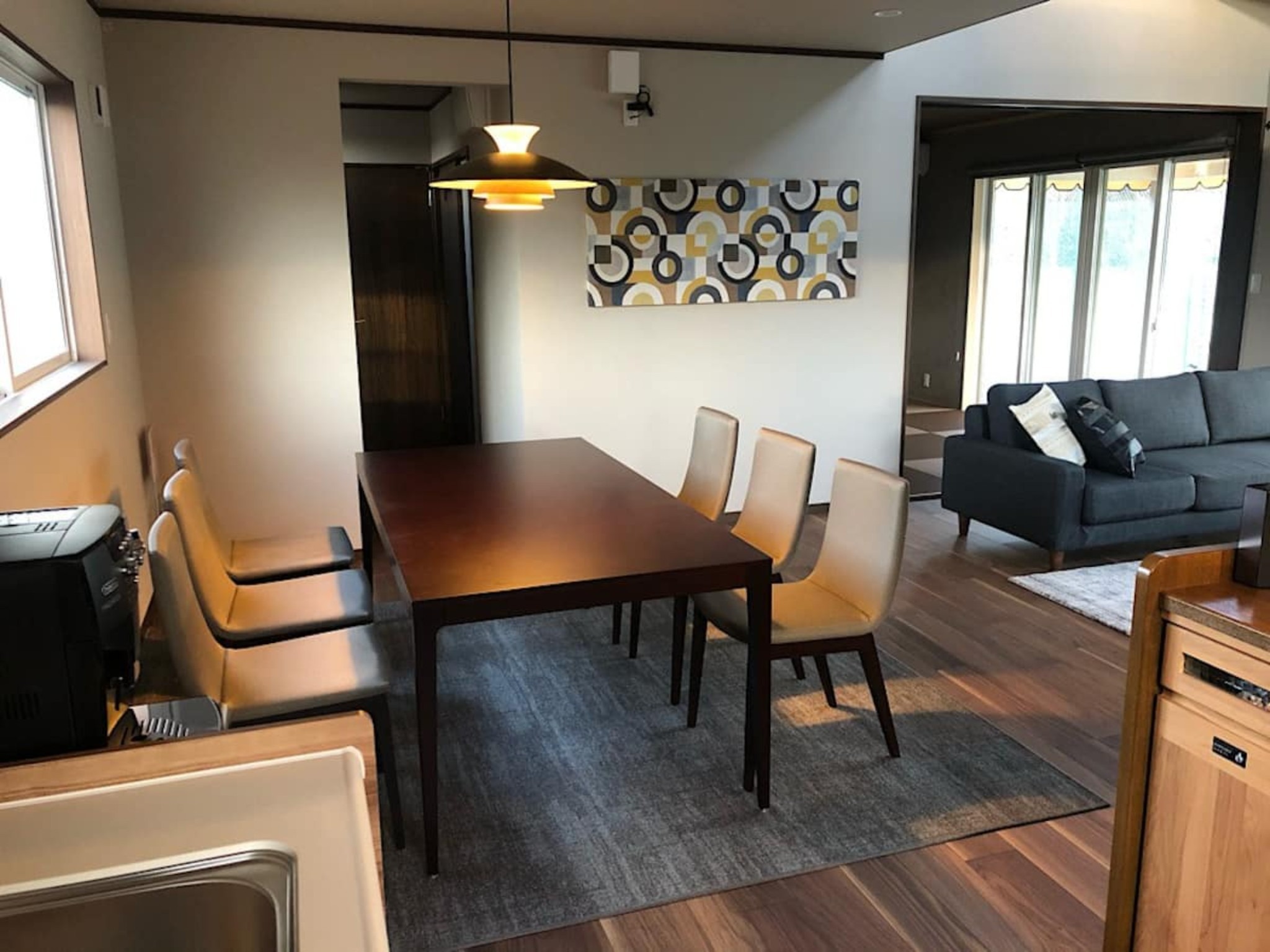 いつでもBBQを楽しめる屋根のある広いウッドデッキ、など
