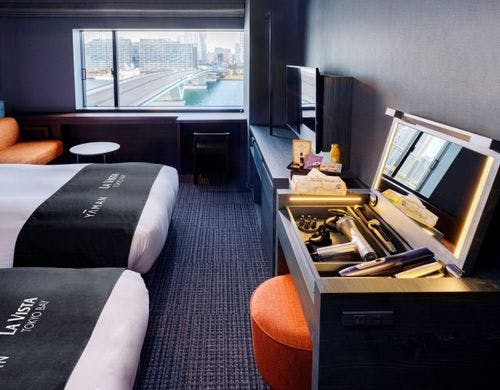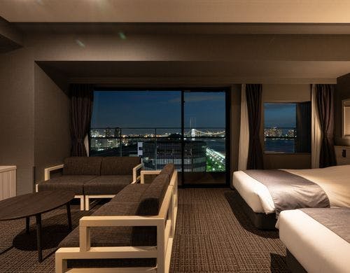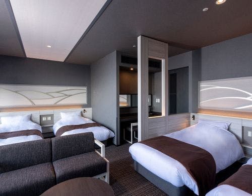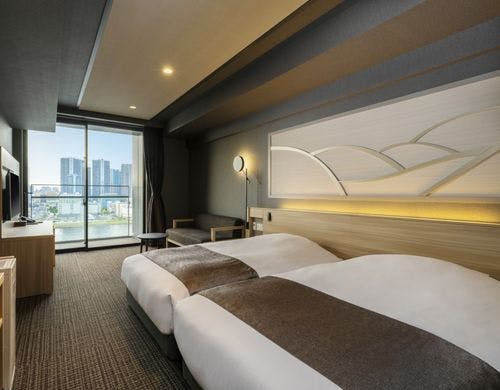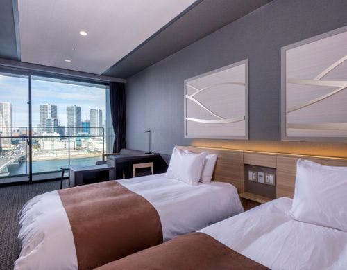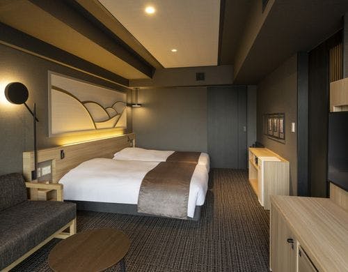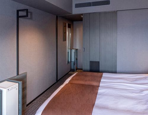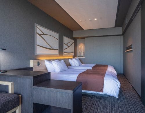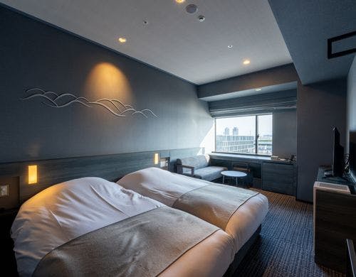 スタイリッシュな客室は快適性に優れ、機能性も充実しています。天然温泉の眺望大浴場で旅や仕事の疲れを癒した後は、USBコンセントや多機能スイッチが揃った快適なベッドでゆっくりとお休みいただけます。デザインと実用性が融合した空間で、質の高い滞在が叶います。