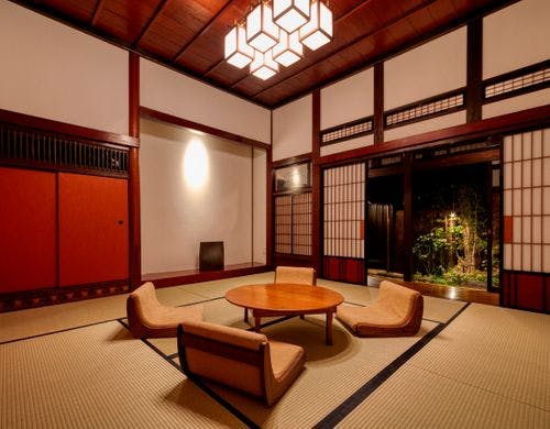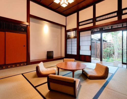 築100年以上の古民家で老舗酒造の地酒と地元産の肴を堪能。工芸品と和の趣に満ちた貸切無人宿で贅沢なひとときを。
