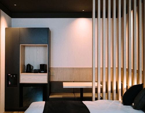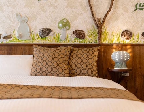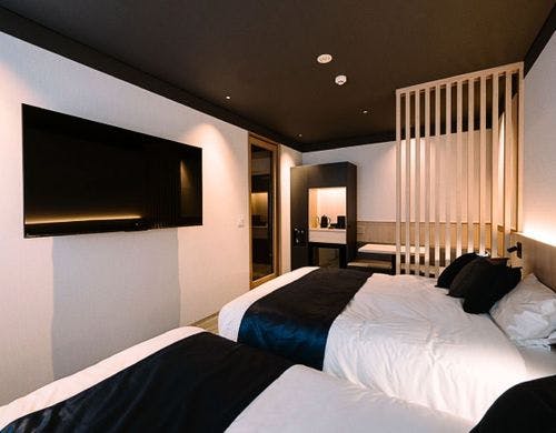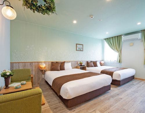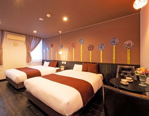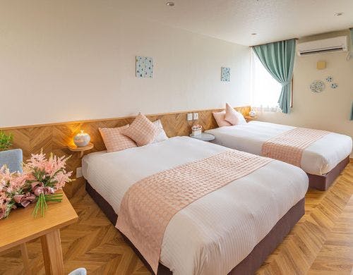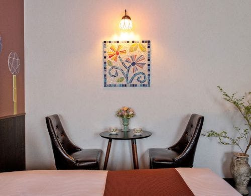 砥部焼の女性作家集団「とべりて」が客室をプロデュース。全客室備えつけの源泉風呂にのんびりと浸かりわたしだけの特別な時間をお楽しみください。