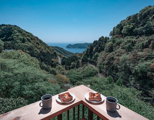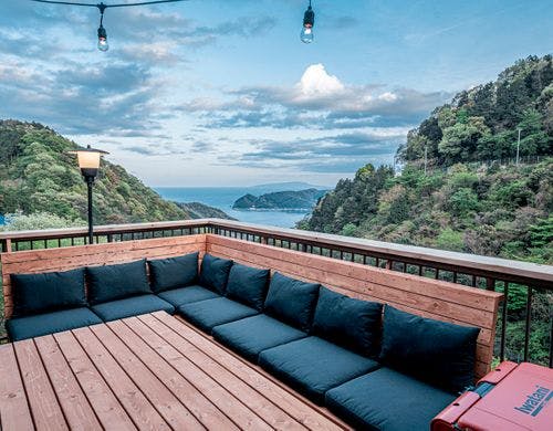熱海市街地から車で約15分、山の中にある隠れ家のような貸別荘。
