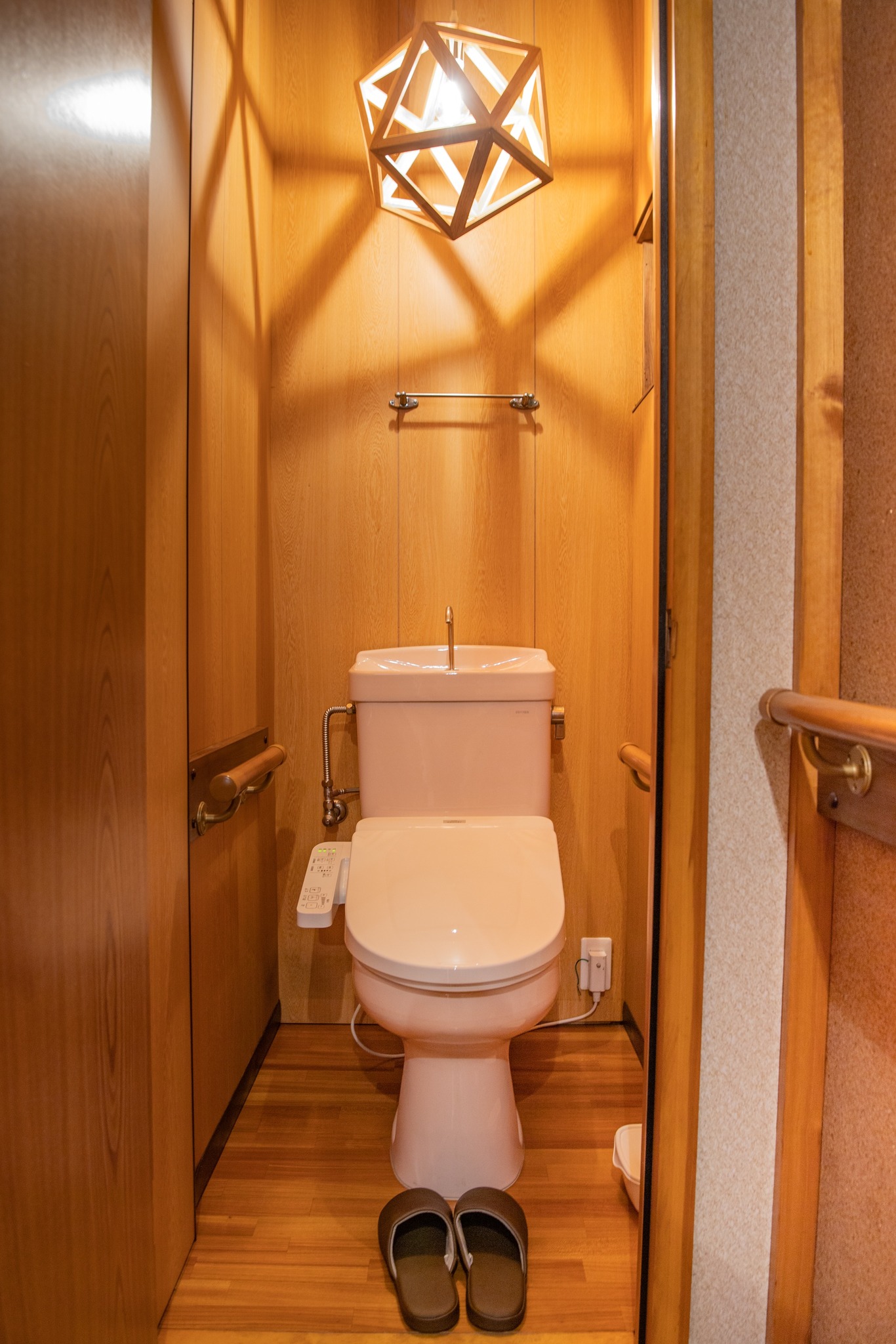 トイレは上下階にあり、1Fには明るい雰囲気で清潔なシャワールームと洗面台がございます。 (徒歩1分の場所にしみじみレトロ銭湯『田中湯』がありますのでお楽しみいただけます)