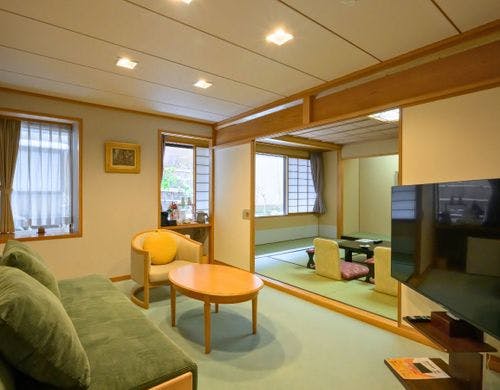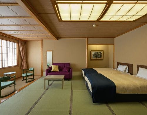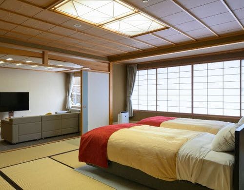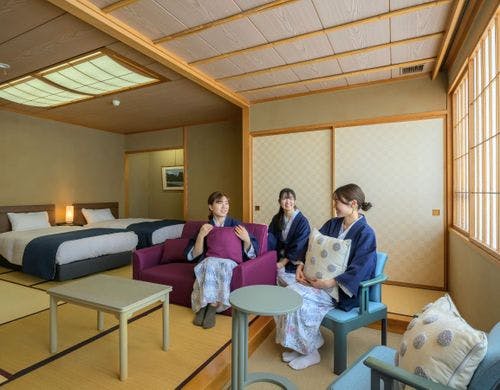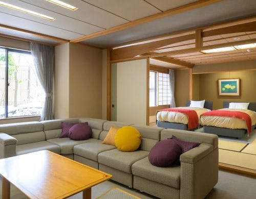 食事なし | 【本丸〇ファミリー和ベッド客室】ローベッド+リビングスペース |