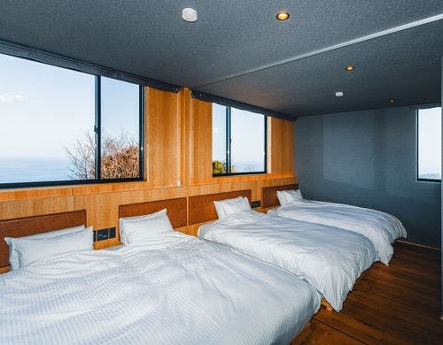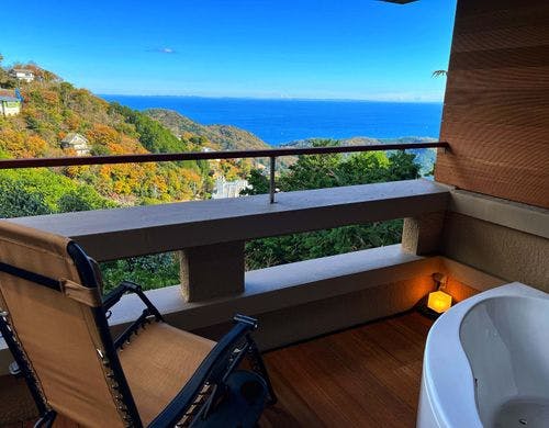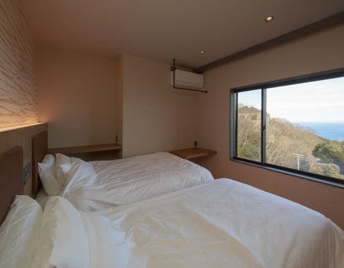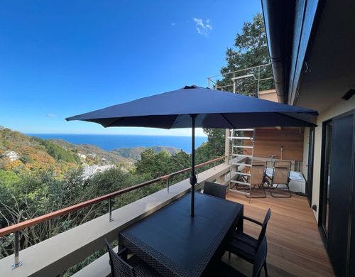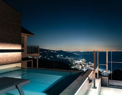 熱海の絶景と朝日や月を望めるセルフロウリュサウナ&温泉付、1日1組限定プライベート貸別荘。オーシャンビューバス完備。室内温泉、星降る屋根で月光浴。小型犬と一緒にご宿泊いただけます。