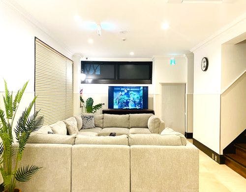 目の前に広がる芦ノ湖、雄大な山々、清廉な空気の中で深呼吸。非日常の落ち着きと安らぎをお約束します。240平方メートル広い二階戸建で最大16名様でご宿泊いただけます。