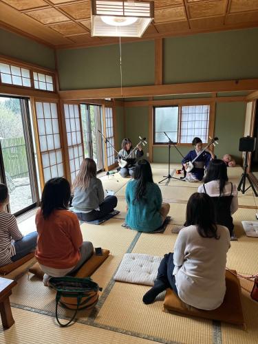 津軽三味線と民謡 繭子の宿にはホットタブがあります。