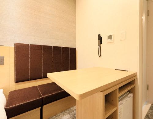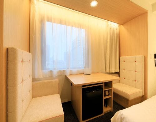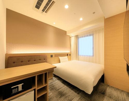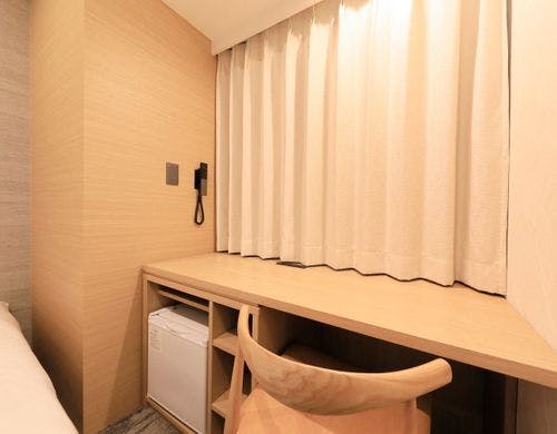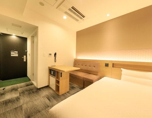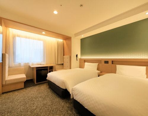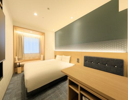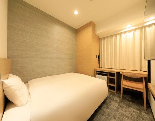 客室は茶室をテーマにした和風のデザインで、落ち着きある色調が使われています。インターネット接続対応テレビを全室に完備し、動画配信サービスの視聴が可能です。シングルやダブル、ツイン、ユニバーサルルームなど多様な客室タイプがあります。