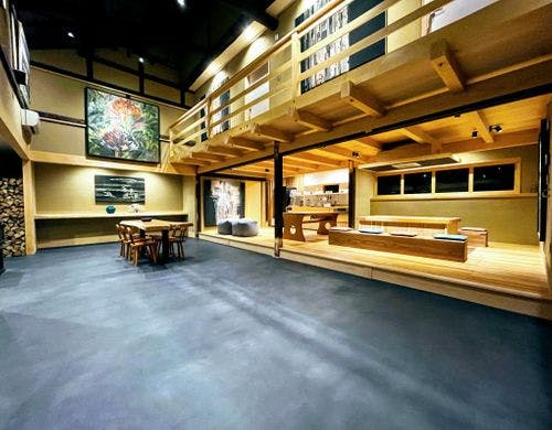 築100年の古民家をリノベーションし、和モダンな宿泊施設として生まれ変わった古民家宿THYME。瓦屋根、大きな梁や柱、外壁など保存できるものは残し、室内は快適に過ごせるように改修しました。