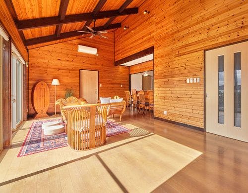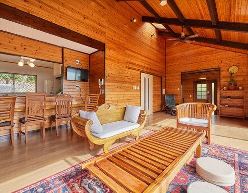【一日一組限定】木肌に包まれる心地良さと、リビング一面に広がるエメラルドグリーンの美しい海と夕陽を望む南国リゾートヴィラ