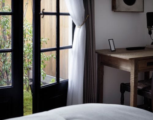 2020年8月三重県桑名市船馬町にオープンした、一日一組限定の一棟貸ホテル。現代アートとアンティークにあしらわせた室内は、4名様までお泊りいただけます。ご夕食は近くの料亭にご予約させていただきます。