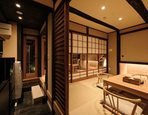 古き良き趣の残る京町家をこだわりの設計とデザインで改装を行った一棟貸し宿泊施設。