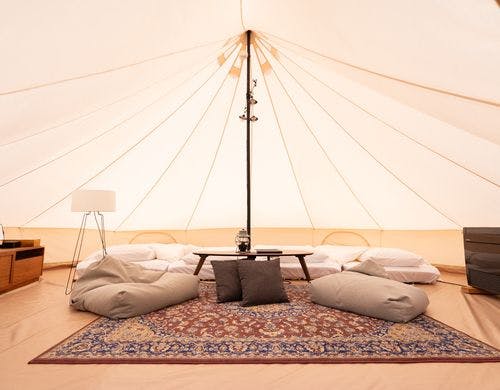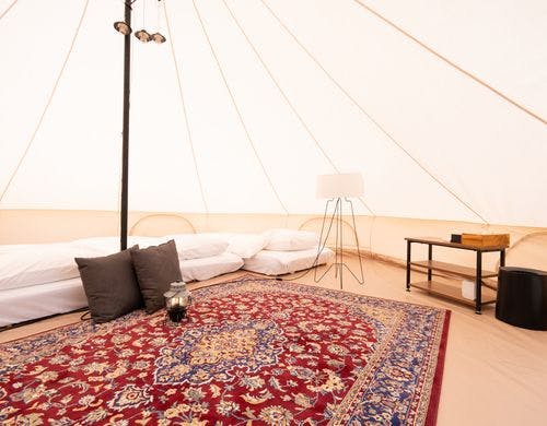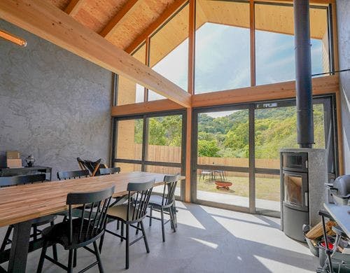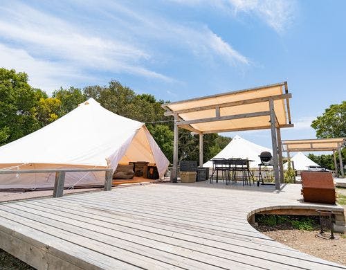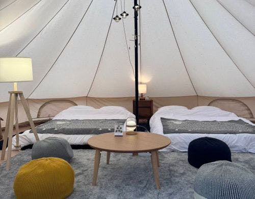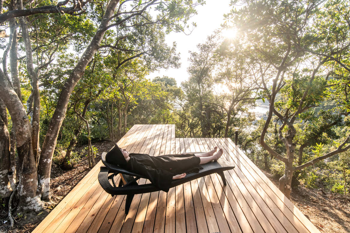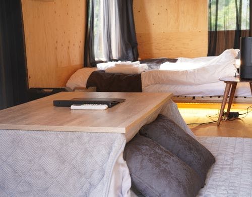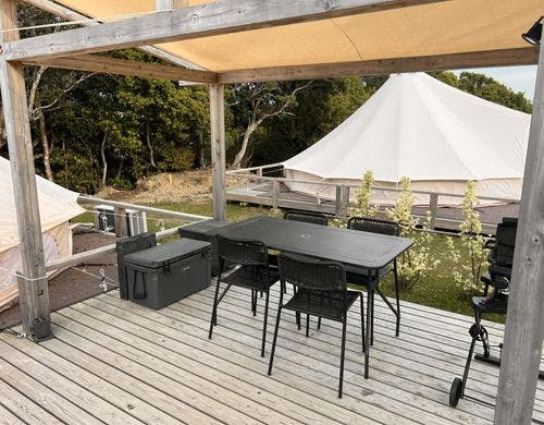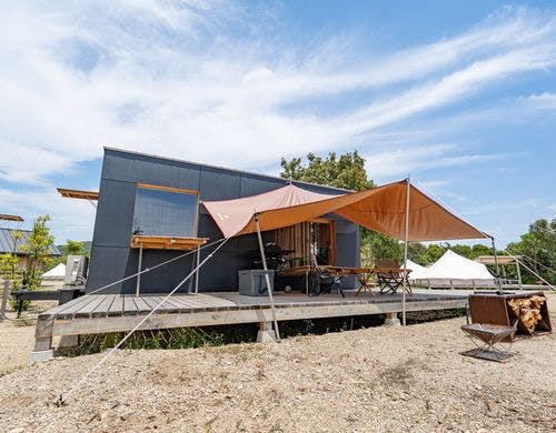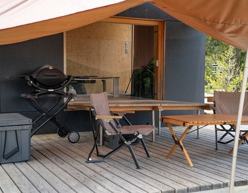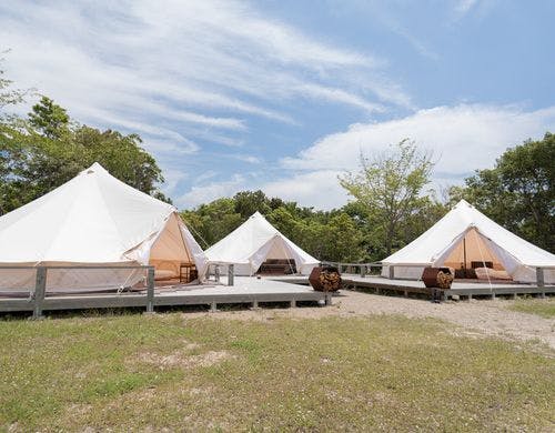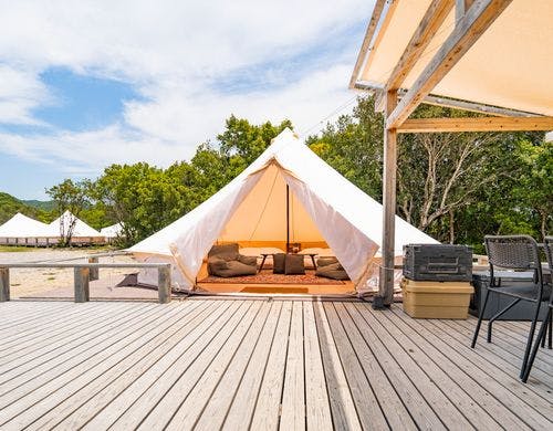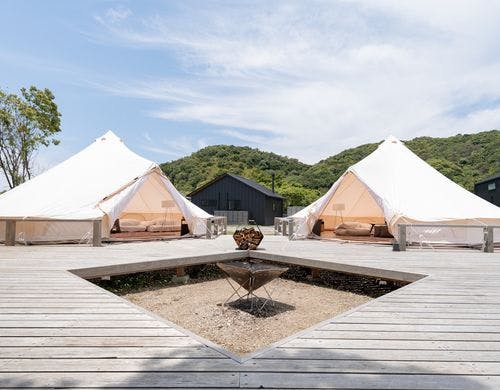 国立公園の大自然の中でアウトドアの深さを表現したグランピング施設。