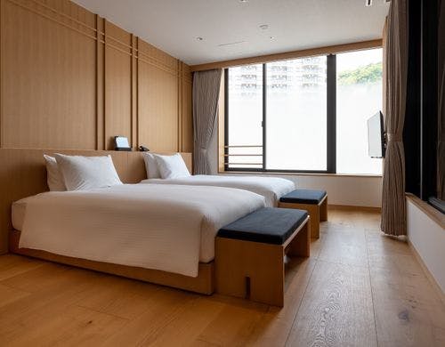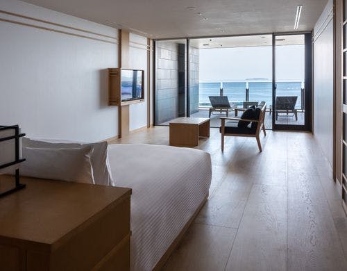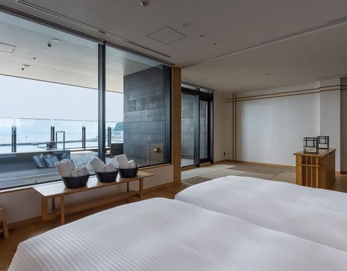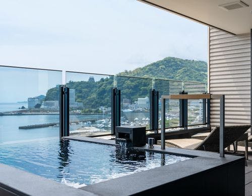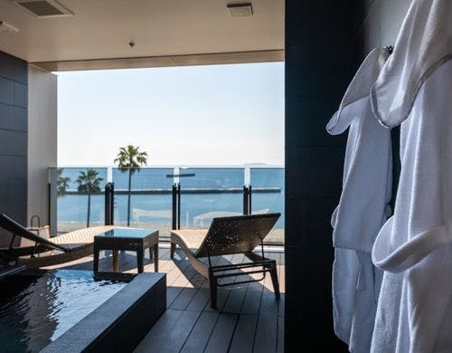 2022年9月グランドオープン。サンビーチとお宮の松正面に建ち、全室に自家源泉を擁した熱海のウエルネスリゾートホテル。