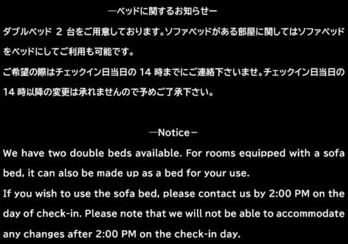 - スタッフは常駐でない場合があります。詳しくは宿泊施設にご確認ください