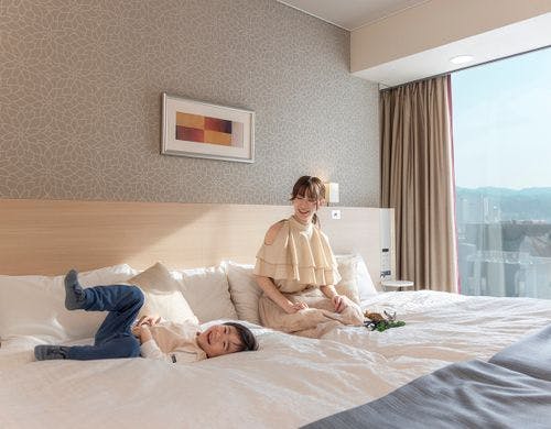 客室は、シングルルームからツインルーム、トリプルルームなど多彩な客室タイプがあります。ツインルームは家族連れやカップルに快適な空間を提供し、エグゼクティブフロアでは低反発マットやウルトラファインバブル生成シャワーヘッドのミラブルzeroを導入しています。ほかにも、女性専用のレディースルームや、バリアフリー対応のユニバーサルルームも備えており、幅広いゲストに配慮しています。