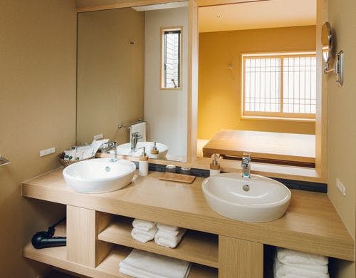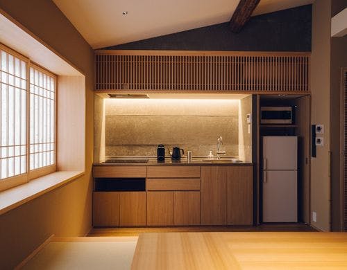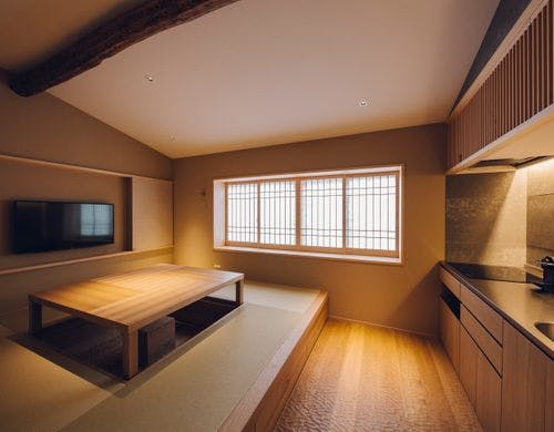 新築で建てられた、京町家造りの宿。床暖房が寝室まで敷き詰められており、温度差に敏感な方にも快適にご宿泊いただけます。小型犬2匹までご宿泊可能(条件あり)。無料駐車場もございます。