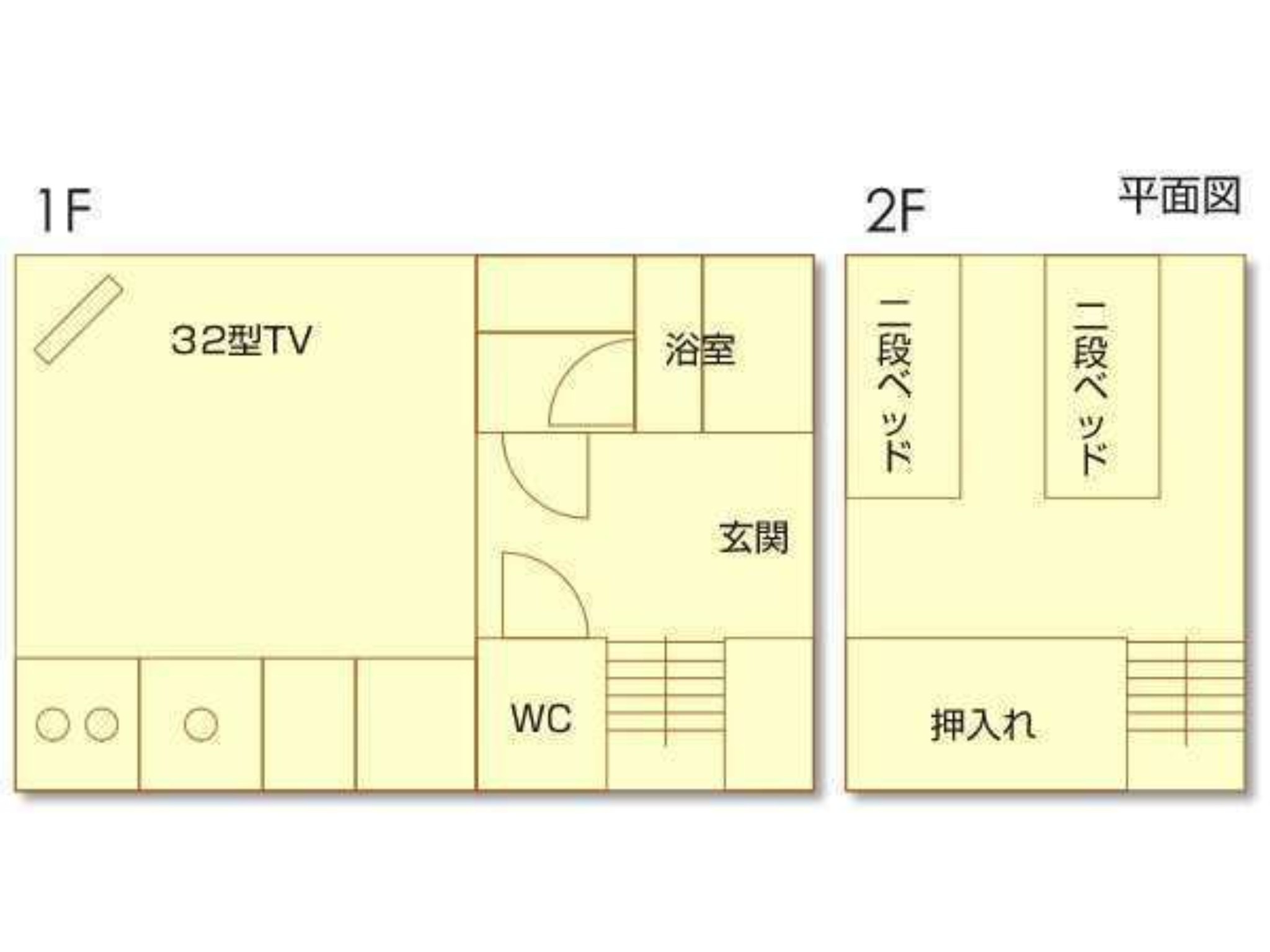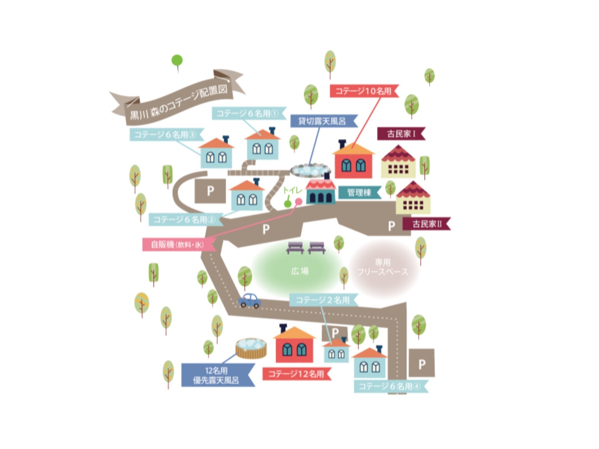 施設内9棟のコテージは、2-20名まで大小、ログハウスから古民家とバリエーション豊富。