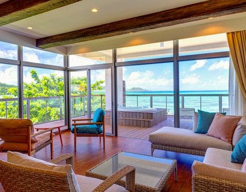 客室は「とぅもーる館」「てぃーだ館」「かびらビレッジ」など多彩な棟から成り、いずれも海や自然を身近に感じられる設計です。オーシャンビューの客室や、ジェットバス付きのバルコニーがあるお部屋、一棟一室のプライベートコテージなど、多様な滞在スタイルに応じた選択が可能です。また、愛犬同伴で利用できる専用ルームも備えています。