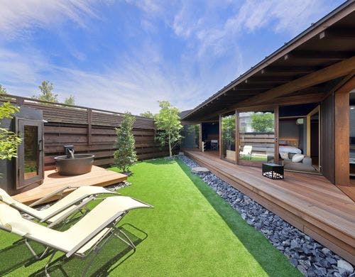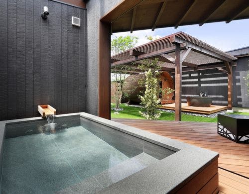 全室プライベートサウナ&温泉露天風呂付きヴィラ満開のおもてなし旅館「花しぶき」の別邸。温泉旅館の優雅とグランピングの湯悦を融合した今までにない新しいヴィラタイプ