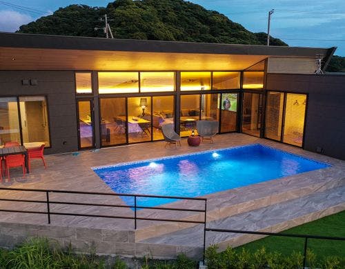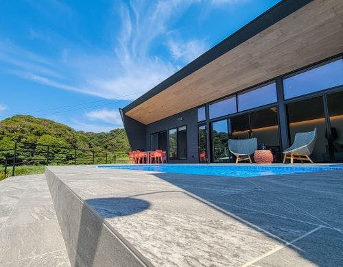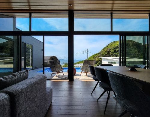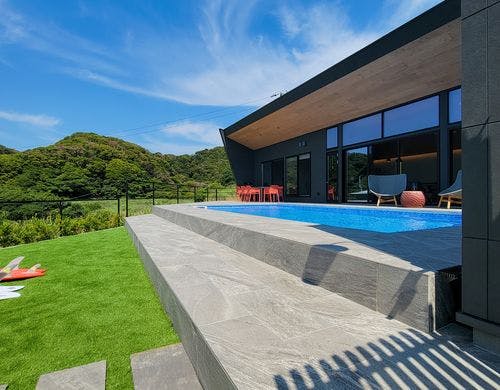 都心から車で約60分「Asile:アジル」は東京湾と富士山を望む丘の上に建つプール&サウナ付きのVILLAです。