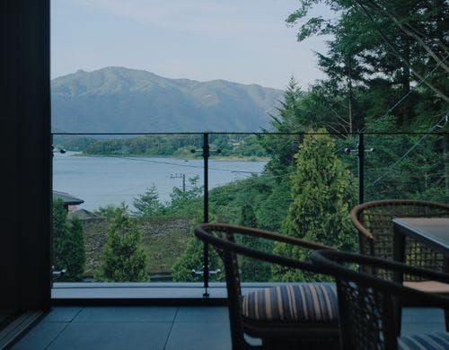 河口湖湖畔のプライベートリゾートホテル。ラグジュアリーなチルをテーマに設計されており、空・湖・森が広々と望めます