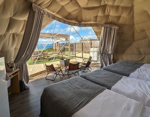 沖縄・南城の海と空をひとりじめ。静寂に包まれる隠れ家リゾート/高台オーシャンビューのグランピング体験!
